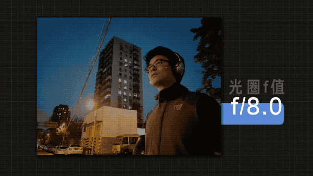 f 值越小,就能給圖像傳感器投射越多的光,提高成像質量,這對於夜間拍攝尤其重要。