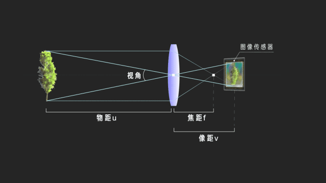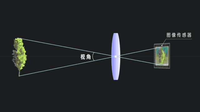拍照,最基本的是視角。這是凸透鏡的成像原理,一個物體由無數個點光源組成,單個點光源從各個方向發出光線經透鏡折射後,都將匯聚在一點上,最終所有點光源都投射在一個平面上,也就是圖像傳感器的位置,形成清晰的倒像,而這個角度就是視角。