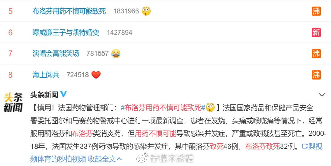 因為這次碼字着急,咱們就不搞什麼“風雅頌賦比興”了,有事兒説事兒。我剛才在社交平台看到一個新聞,熱度排名第五的布洛芬用藥不慎可能致死。雖然我一直提倡大家謹慎用藥,布洛芬的副作用還是客觀存在的;但這個話題過於驚悚,我認為可能造成一些不必要的誤解。所以,就有了這篇文字。