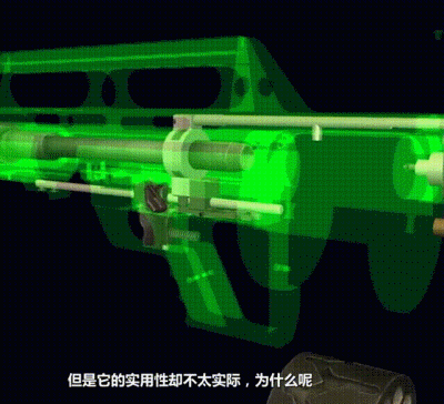 值得一提的是,該槍採用了自由浮動式槍管設計,發射時,利用發射每一發霰彈時所產生的部分高壓氣體向前驅動槍管,火藥燃氣通過導氣孔進入導氣室,帶動整個槍管前移。槍口前端還採用了非常奇特的斜面設計,用來消焰以及減少槍口上揚。