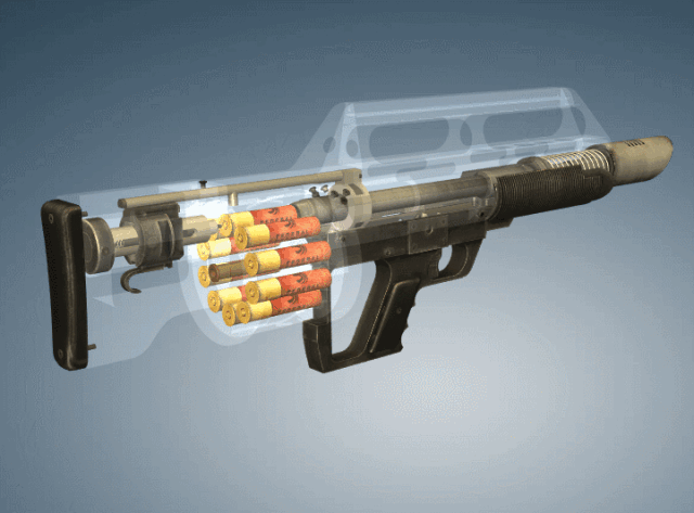令人遺憾的是這款在遊戲中大發光彩的霰彈槍在現實中僅僅只製造了三把,並且有資料稱其中的兩把在破壞性測試中被毀壞,目前世上僅剩下一把(據稱僅剩下的一把槍為不可發射的模型槍)。