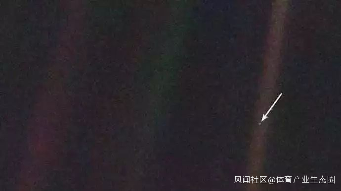 在經歷了13年近64億公里的漫長飛行後,1990年2月14日,旅行者1號太空船受美國國家航太總署發出的指令,向後回望並拍攝了一張其一路探訪過的太陽系行星照片。而在細微之處一個類似顆粒狀的藍色小點,便是地球在64億公里外的模樣。