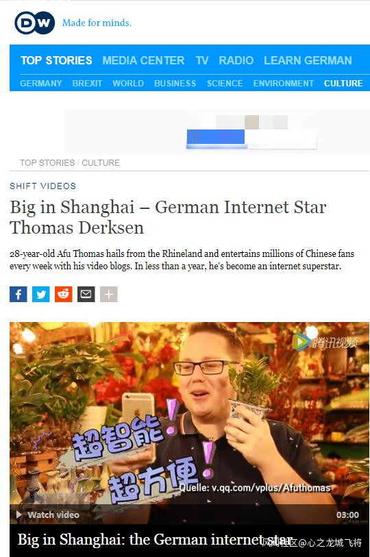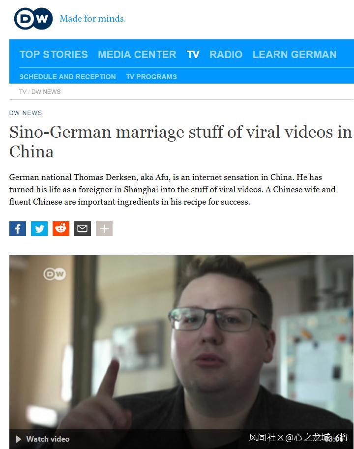 早在2017年5月29日,德國之聲就曾發佈視頻稱,德國人托馬斯 德克森,即阿福(Thomas)是中國互聯網巨星。今年4月15日,德國之聲又發佈了一篇視頻報道。報道指出,他的中國媳婦和流利的中文是他走紅的重要因素。