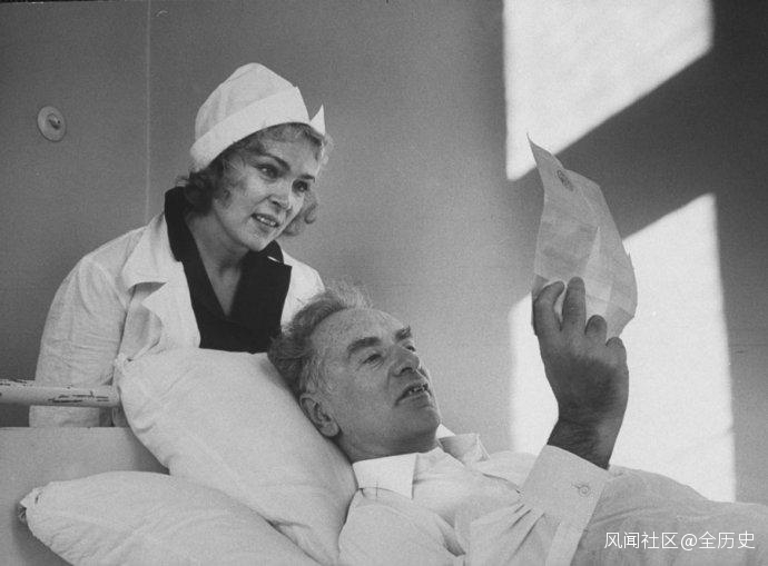妻子在醫院讓朗道看他獲得諾貝爾獎的通知