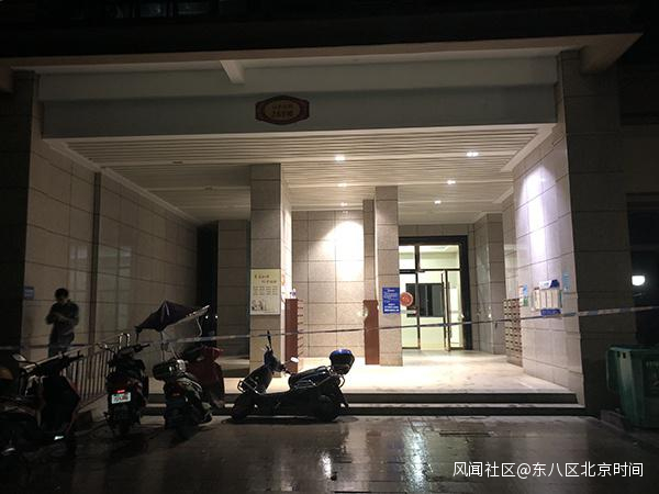 葛磊家所在樓下拉起了警戒線。澎湃新聞記者 彭瑜 攝