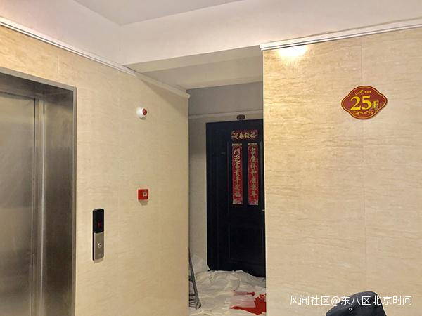 4月21日晚,葛磊家掛着平安春聯的防盜門前,地上鋪着些用於保護兇案現場的塑料狀物品。澎湃新聞記者 彭瑜 攝