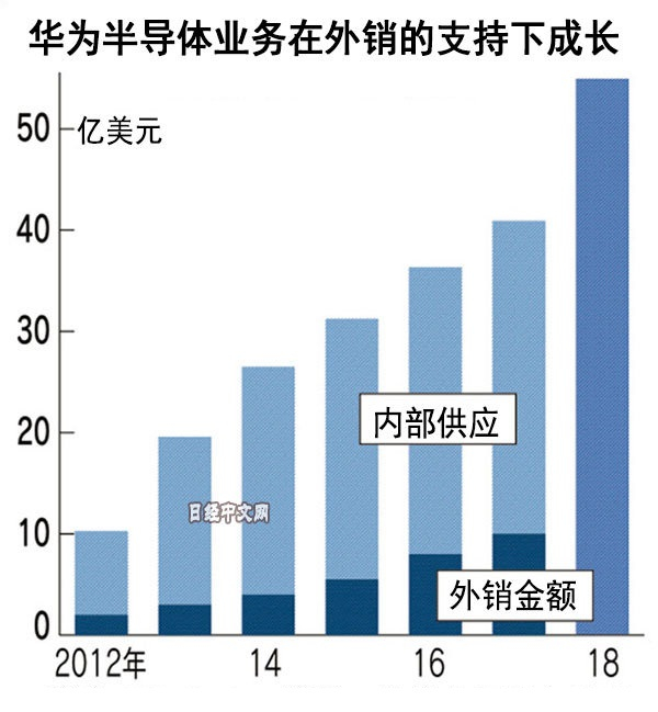 華為在外銷方面已經取得一定成績。日本經濟新聞(中文版:日經中文網)得到了海思半導體提供給客户的資料,顯示出截至2017年年底,外銷芯片已經達到10億美元。