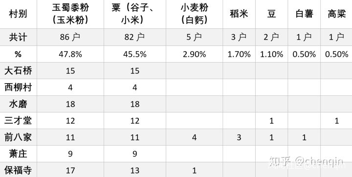表格 2:北京清華園左近七村農民糧食之種類 1924—1925