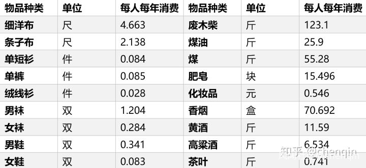 從上表可以看到,一百年前,人們的成品衣物消費非常少,主要是通過購買布料做成衣服。就連最簡單的短衫單褲,購買數量都少得可憐,人們平均3年買一雙男鞋,平均12年才會去買一件衣服,一雙女鞋,而到了現在一不高興就買買買的女鞋,也要12年才會買一雙,大部分人購買的都是草鞋。