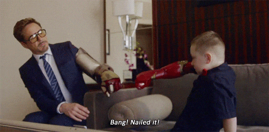 在電影《鋼鐵俠》結尾,神盾局早已準備好台詞,然而小羅伯特·唐尼卻眼神一轉,説出了一句——我就是鋼鐵俠。(I am Iron Man.)