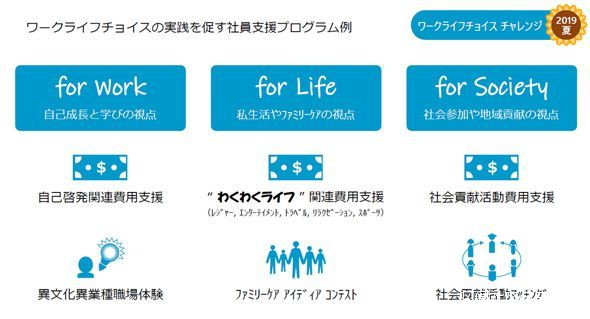 在“工作生活選擇挑戰2019夏季”中,“for Work”“for Life”“for Society”3個視點,也準備了支援程序