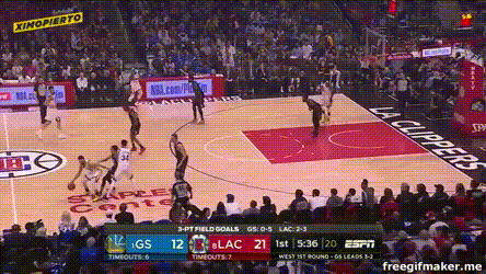 路威今天的3個球裏,有一個是這麼投中的:感受一下勇士上線3底線2,堵中路放弱側也要乾死他的決心: