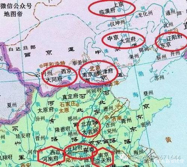 提到“南京應天府”,大家可能更多想到的是江南那個六朝古都金陵,其實這是一個誤區,説到這裏,我們需要理清楚一個概念,中國古代的都城概念跟今天首都是兩回事,這裏的“東京”、“南京”不是一個地名,而是一種行政區劃,通俗的解釋應當是“東邊的京城”、“南邊的京城”,用英文解釋可能更直觀(East capital、South capital),而今天的“北京”、“南京”則是具有歷史淵源的徹徹底底的地名。