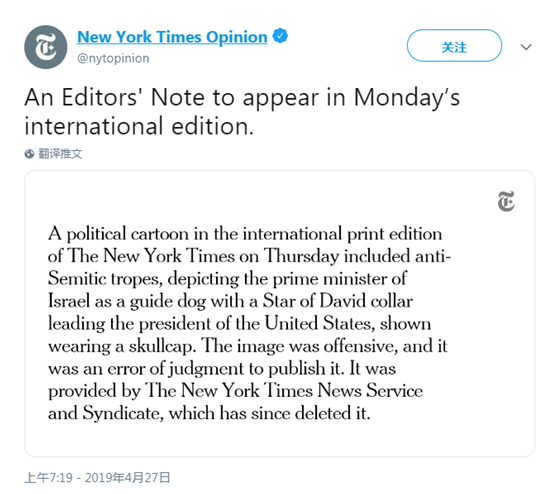 27日,《紐約時報》在推特上發文致歉。