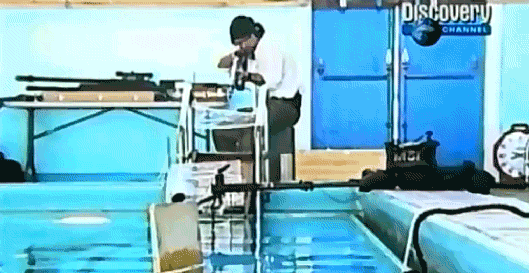 為了試驗普通槍械能否在水下具備殺傷力,著名美國探索類節目《流言終結者》中曾專門做了試驗。實驗中,試驗人員先後試用了老式火槍、霰彈槍、突擊步槍再到二戰時的M1步槍,都不能傷害到水下一米外的目標,甚至最後搬出了反器材步槍,仍然沒能對水下目標造成有效殺傷!可見,水層真的是傳統子彈的剋星,果然能夠以柔克剛。