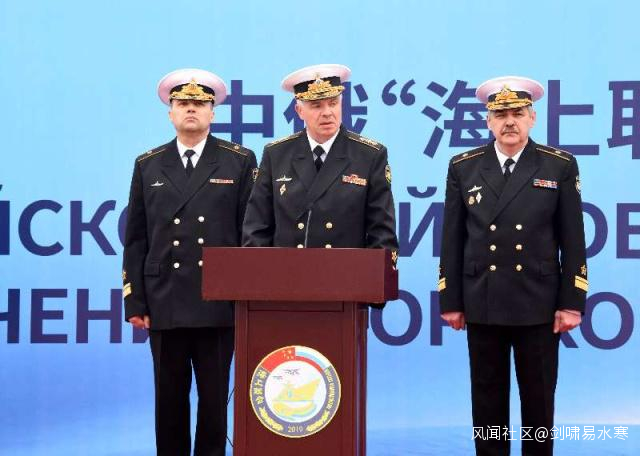 中方總導演、中國海軍副司令員邱延鵬,首先代表中國人民解放軍海軍沈金龍司令員、秦生祥政委對俄方艦艇編隊官兵的到來表示歡迎和問候。邱延鵬在致辭中説,2012年,中俄兩國海軍在青島一起開啓了“海上聯合”系列軍事