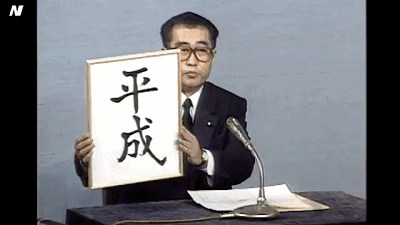 昭和六十四年(1989年)1月7日,昭和天皇駕崩,在當天,日本政府召開會議討論新年號,最後由當時的內閣官房長官小淵惠三召開記者會,官宣以「平成」作為日本的新年號。