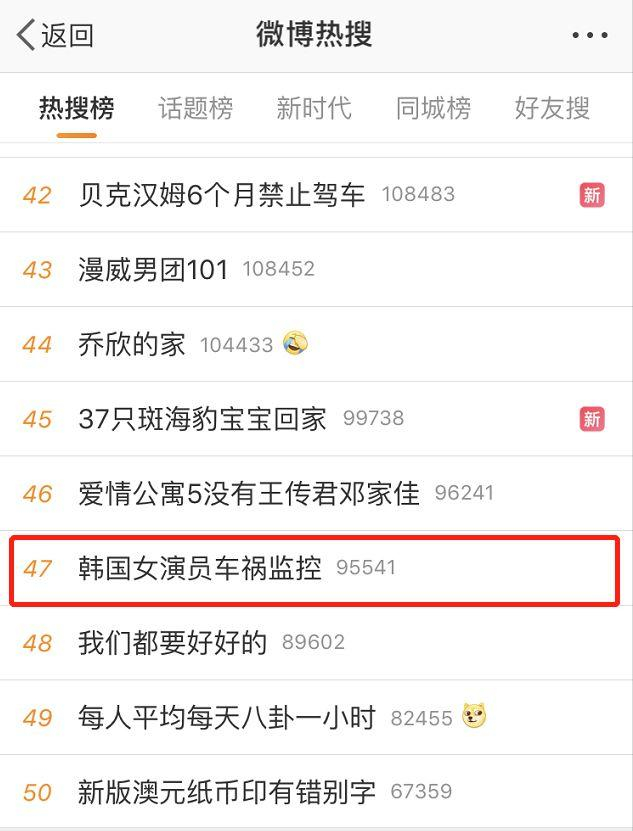 今天,一則“韓國女演員車禍監控 ”的新聞上了微博熱搜榜。