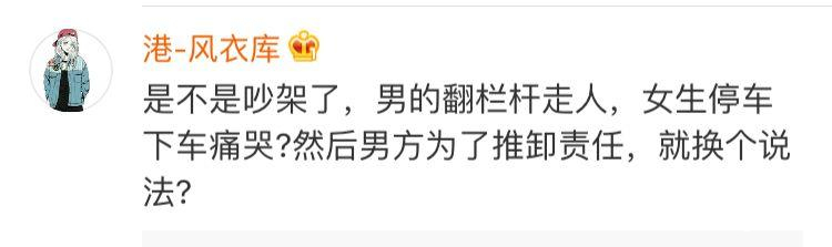 吵架派則提出這樣的假設:兩人吵架,男的翻杆走人,女的停車下車痛哭,然後男方為了推卸責任,就換個説法。