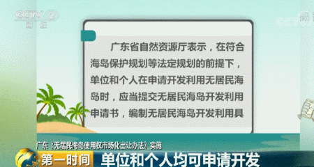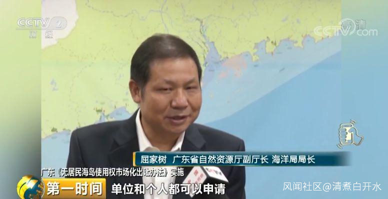 廣東省自然資源廳副廳長海洋局局長屈家樹: 中間明確了對無居民海島的開發利用,單位和個人都可以申請 ,但是我們在意見裏面也明確了有關的條件。