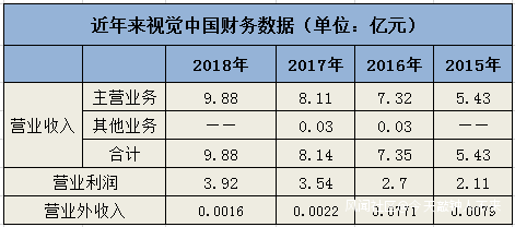 2018年,視覺中國實現營業收入9.88億元,同比增長21.27%;實現營業利潤3.92億元,同比增長10.92%。