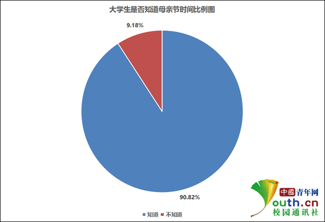 大學生是否知道母親節時間比例。中國青年網記者 李華錫 製圖