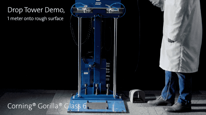 而到了第六代大猩猩玻璃,則變成了「平均可經受連續 15 次從 1 米高度到粗糙表面的跌落」。