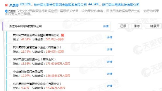 據天眼查資料顯示,同牛科技成立於2016年7月,註冊資本1130萬元,創始人和實控人均為朱晟卿。