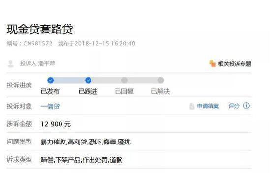 由於利率畸高、暴力催收,相關投訴比比皆是,一信貸因此被聚投訴列為“2017互聯網消費金融十大黑榜商家”之一。