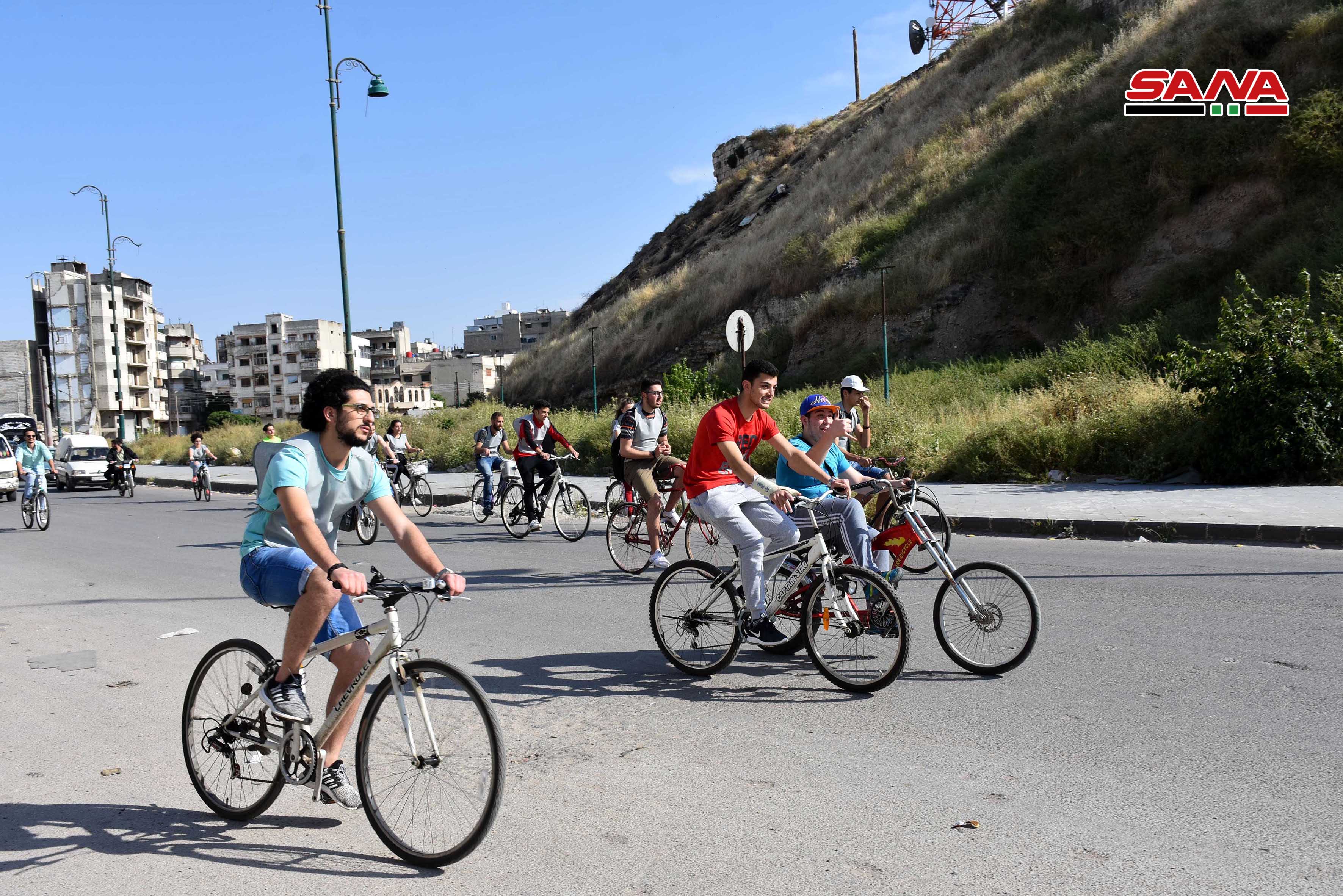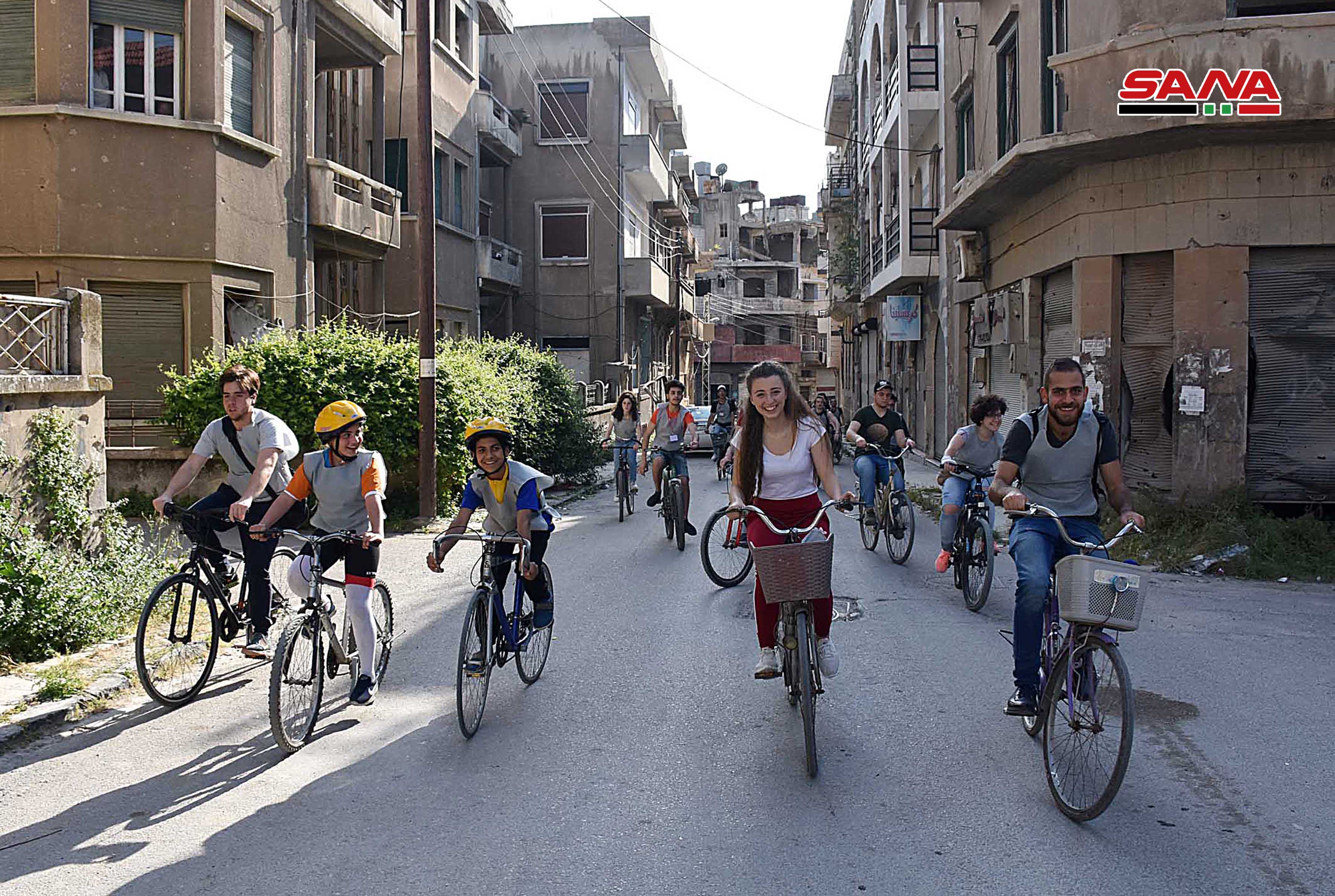 當天,當地100多名學生從霍姆斯市不同的廣場出發,穿過霍姆斯5公里的圍牆進入該城。