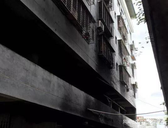 轉到事發民房的後面,則明顯可以看到大火燃燒後的痕跡,後門已經燃燒變形,牆體被燻黑直到三樓,三樓窗户外掛起的衣物已經變黑破損。