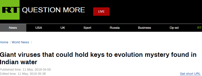 【環球網報道 實習記者 侯佳欣】病毒也有益處?在印度一項研究中,人們從印度河水中發現了一些神秘的巨型病毒。由於該病毒更換宿主時可以囤積並傳遞新基因,科學家稱該病毒的發現可以幫助解開生物進化之謎。