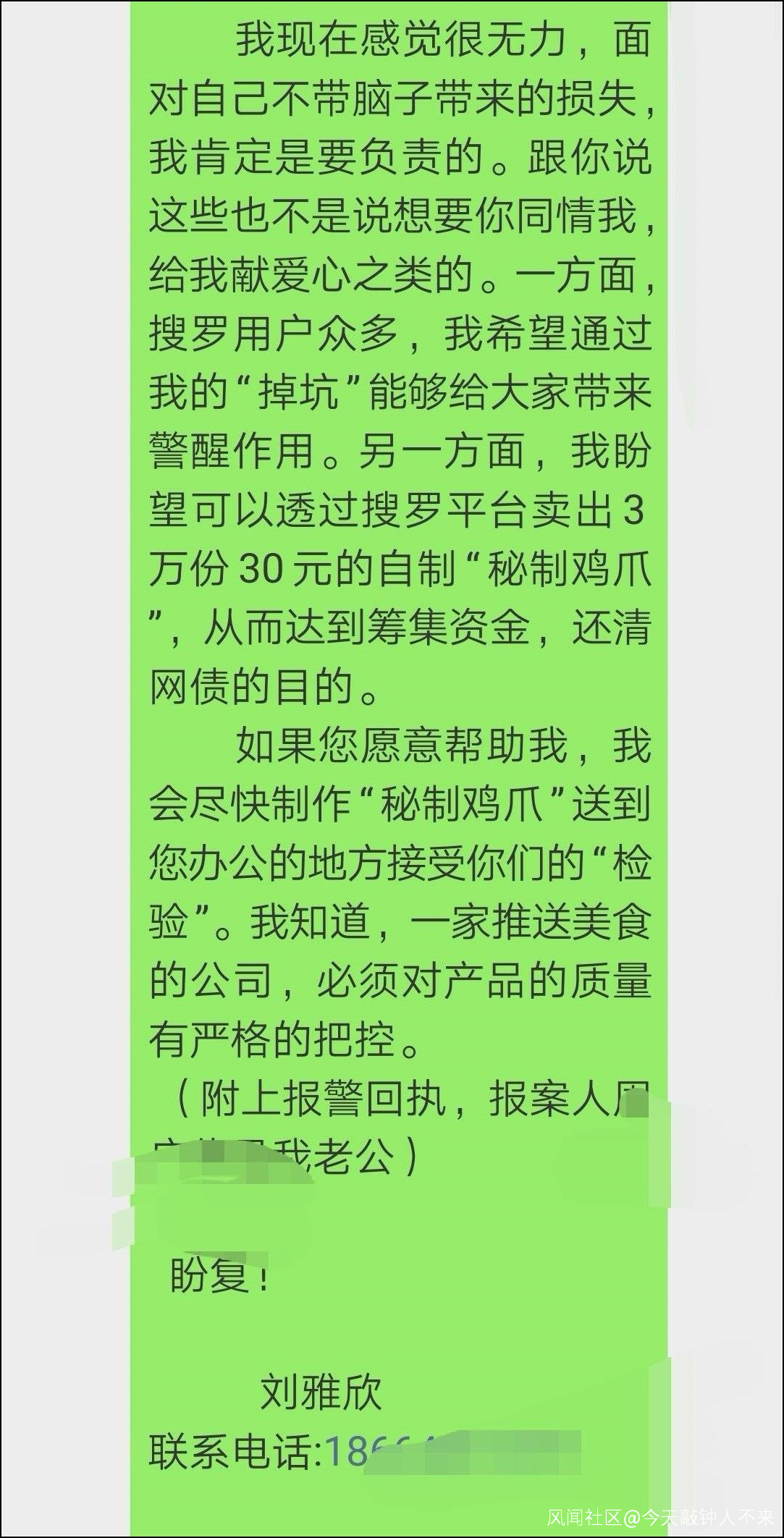 被騙52萬博主:“事發第二天,我就想到賣雞爪還貸了”???_風聞