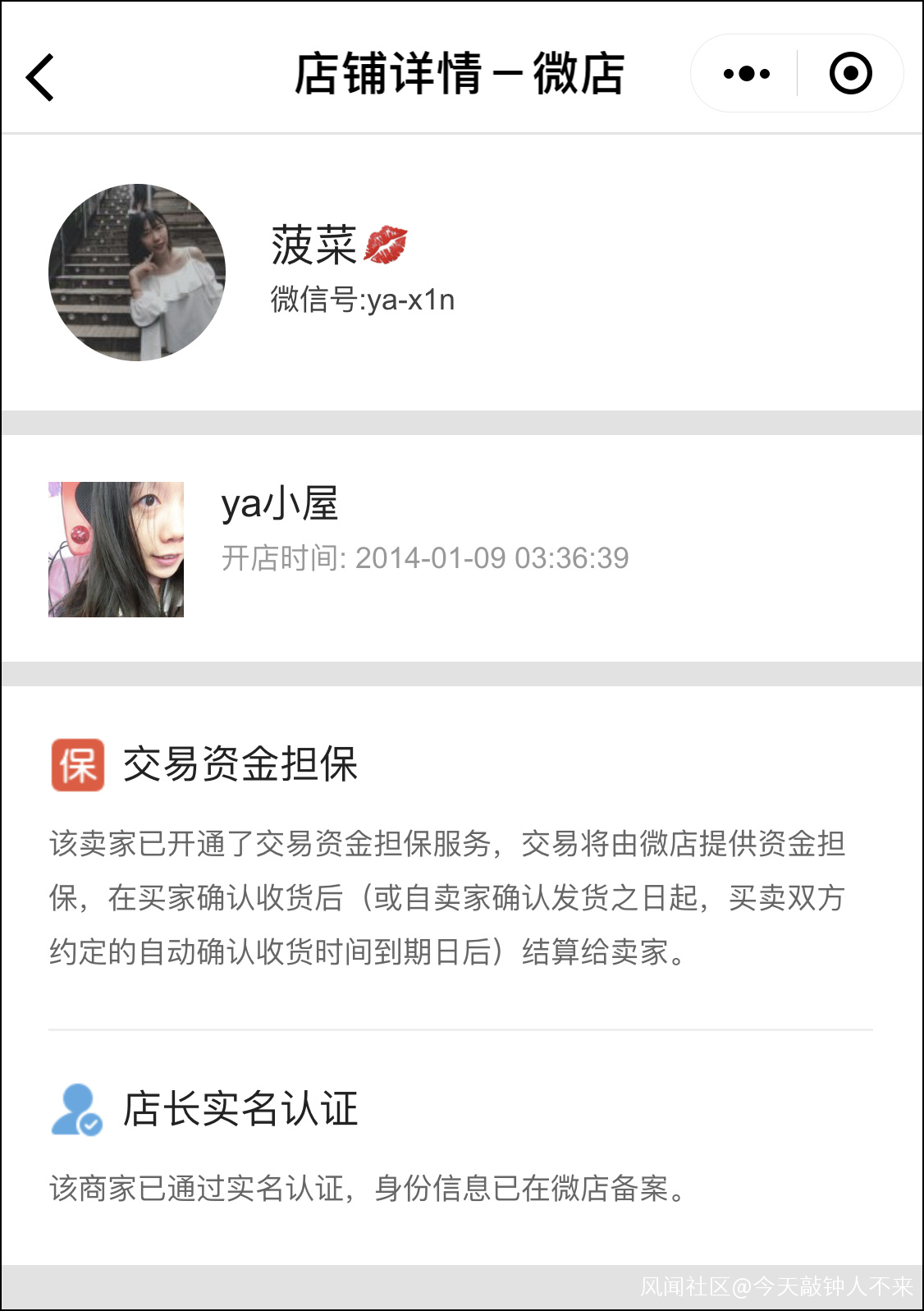 進一步查詢發現,這家微店是在2014年1月上線的,並且已經通過店長實名認證。或可表明,博主在早前微博中提到的“因為我以前一段時間自己在家做着賣過”的信息屬實。