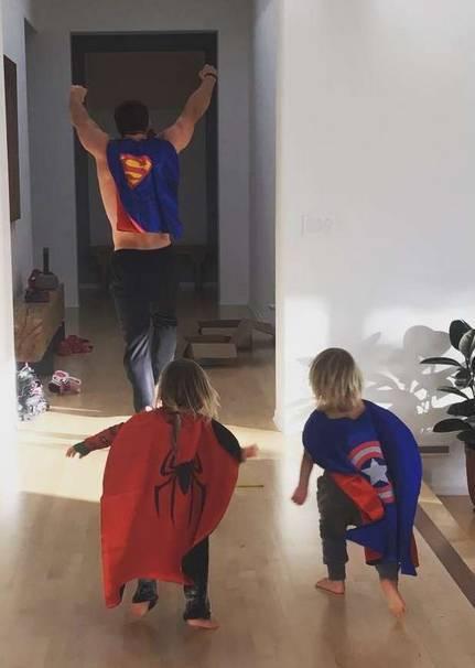 回到家裏,克里斯還會帶着兒子們披上超級英雄的披風,上演超有愛版的“復仇者聯盟”。(雷神之錘還擺在換鞋的凳子上……)
