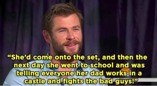 女兒有一天發現電視裏面的英雄雷神是自己爸爸,驕傲的克里斯高興了老半天。