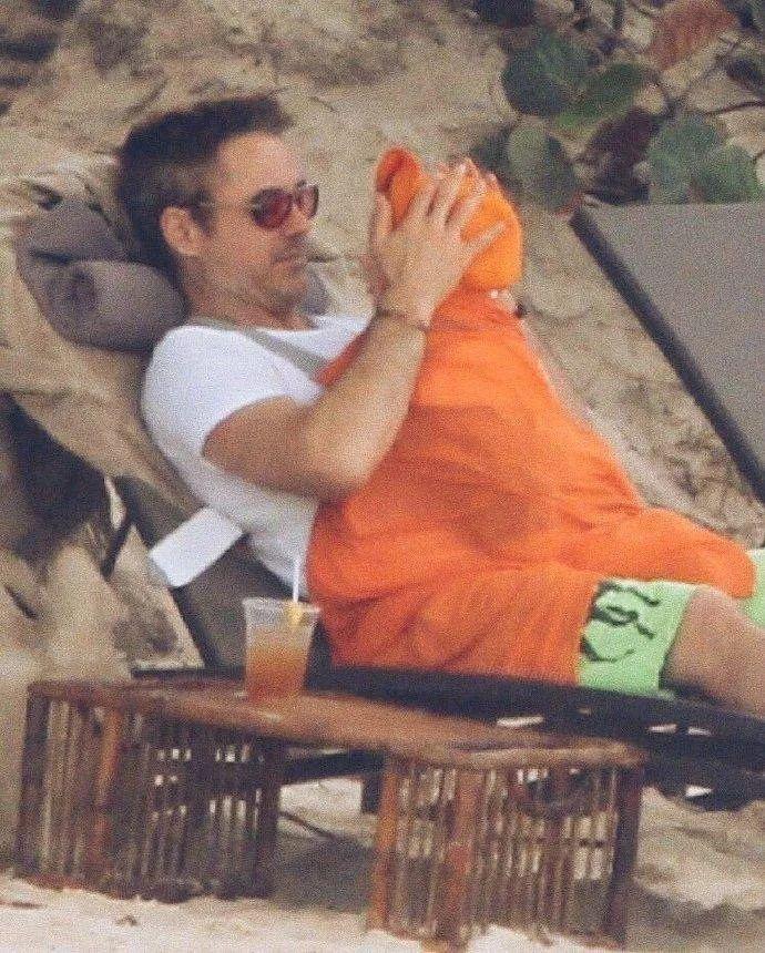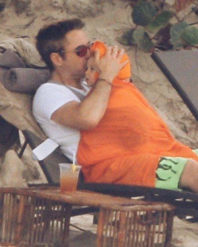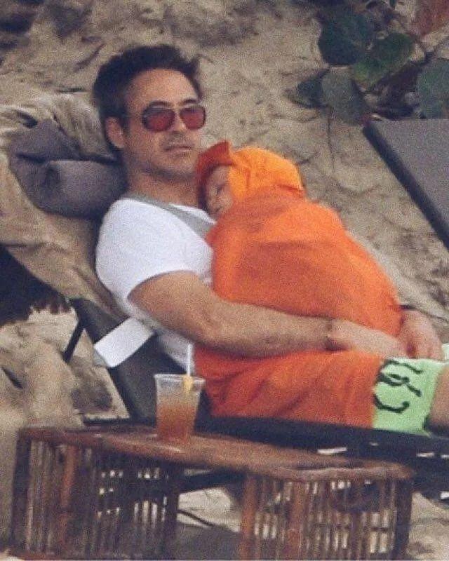 “鋼鐵俠”小羅伯特⋅唐尼和女兒Avri Roe海灘度假,唐尼貼心地給女兒裹上粉紅色的毛毯,生怕被海風吹感冒……女兒累了就直接摟到懷裏,多麼温暖和寵溺。