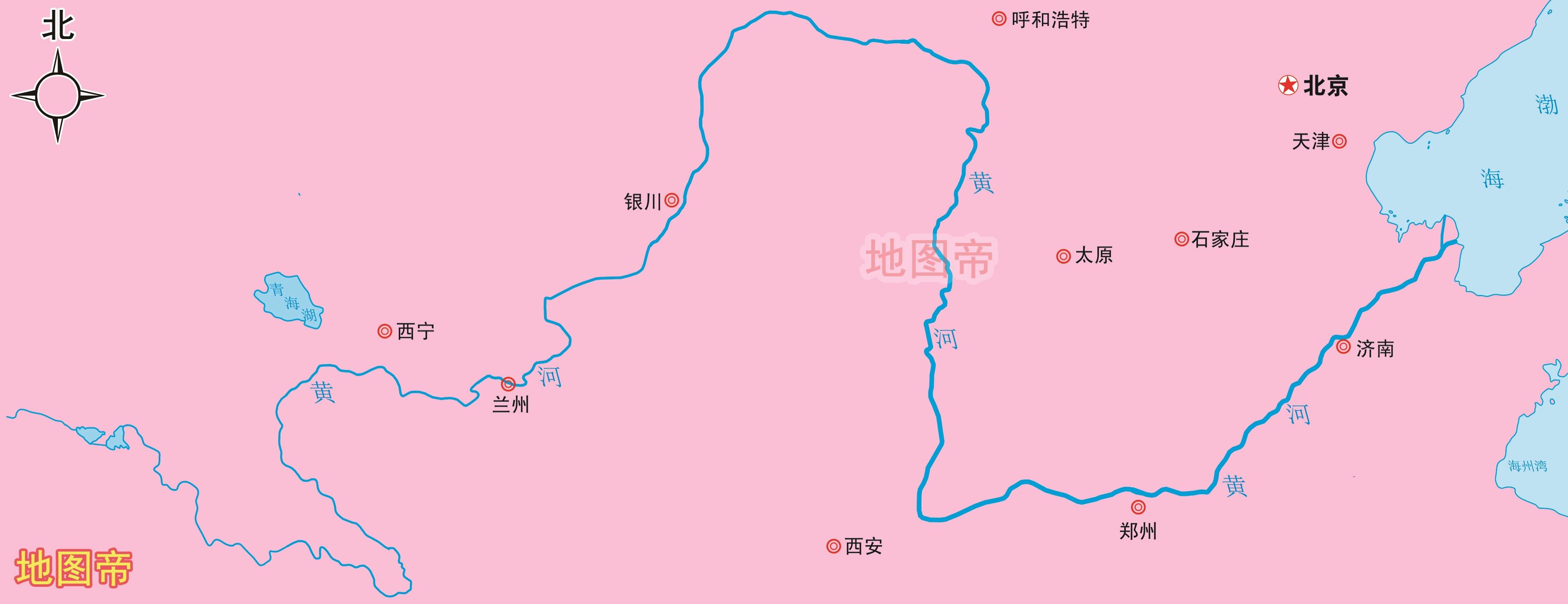 黃河干流流經青海、四川、甘肅、寧夏、內蒙古、陝西、山西、河南及山東9個省(自治區),最後流入渤海。