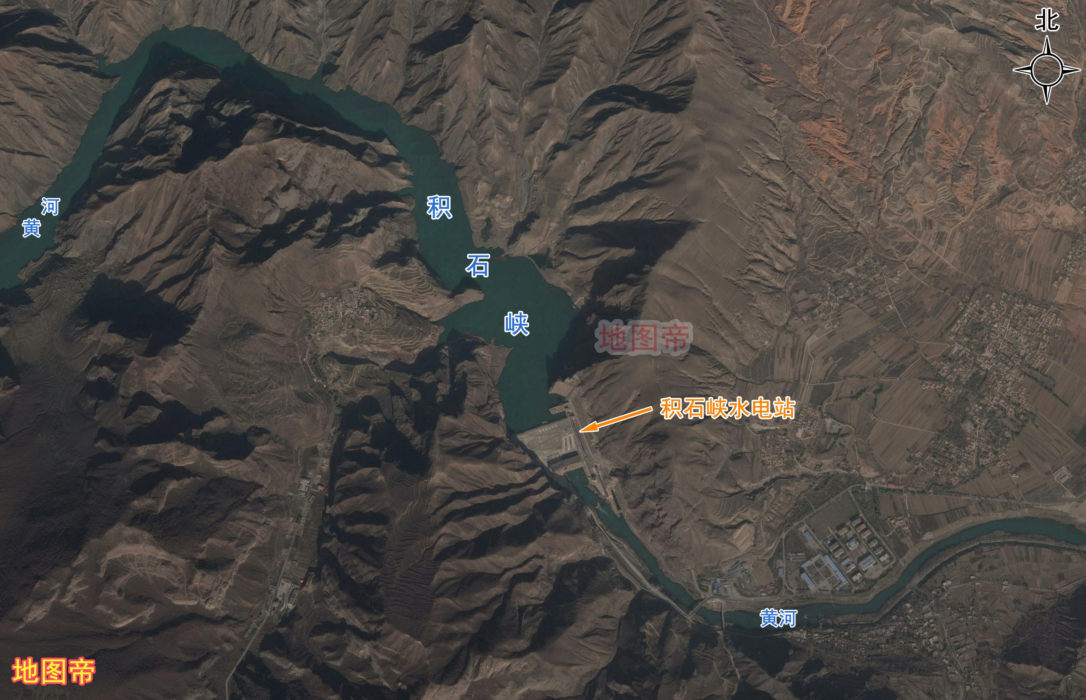積石山附近地勢徒然下降,水力資源豐富,於是因地制宜修建積石峽水電站。電站位於青海省循化縣,下游不遠處就是甘肅省積石山保安族東鄉族撒拉族自治縣。