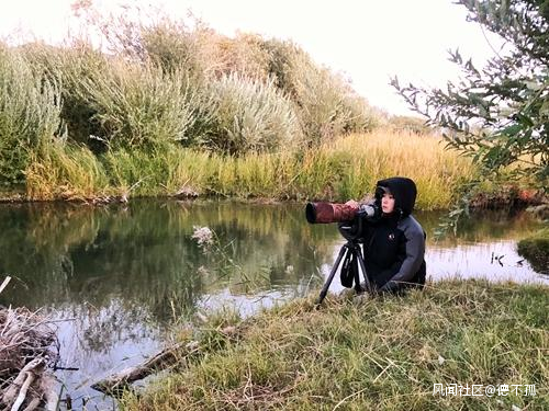 在卡拉麥裏保護區,有一個水源地,許多野生動物在旱季會來喝水,初雯雯和小夥伴們經常蹲守在這兒:挖一個坑,趴一邊不能動,這樣才能拍到黃羊、野馬喝水好看的景象。