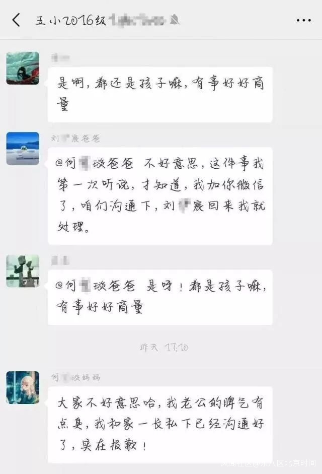 3、被害男孩的父親,前一天晚上已加女孩母親的微信,並進行了溝通,“某種程度上達成了共識”,但是女孩父親不認可;