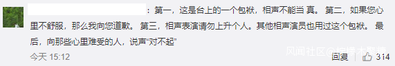 而且我一直覺得飯圈這種事情,道德應該是一個起碼的底限,我可以理解粉絲對於偶像的維護。但是咱們不能不分青紅皂白吧。有些張雲雷的粉絲説這就是個包袱、不要上綱上線,那他張雲雷敢把這個段話在三個地方現場説一遍嗎?