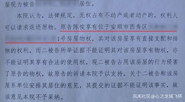 在貴州省安順市西秀區人民法院出具的民事判決書上,法院明確了房屋產權歸陳先生所有。 因此,陳先生向法院申請了強制執行。