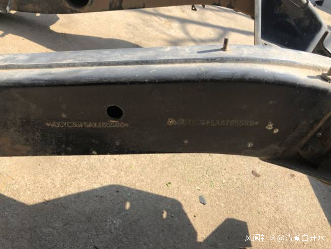董先生找到被換掉的原車縱梁,發現上面有兩個車架號。