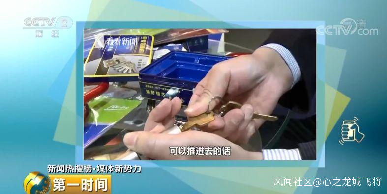 那麼,如何判斷一個鎖芯是A級還是B級以上呢?除了查看説明書,質檢報告,觀察鑰匙形狀之外,陳明華師傅還有這樣一個小竅門。“鑰匙插進鎖孔裏一半或三分之一,把鑰匙輕輕扭住,往裏面推。如果能推進去,這個鎖就是升級的,B級以上的。”