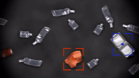 左邊,是個識別工具,架在傳送帶上。所有經過的物體,都要被它犀利的眼神計算機視覺算法瞬間看清材質。