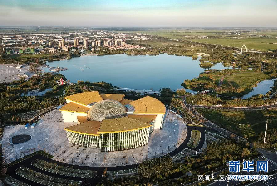 白城市科文中心及鶴鳴湖公園全景,圖片來源:新華社