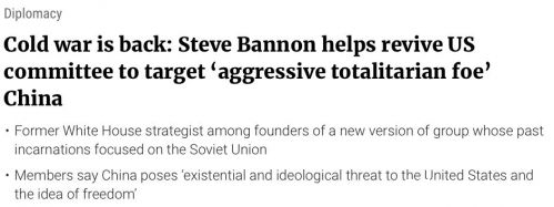 (南華早報:3月26日《冷戰迴歸:班農助力重振委員會 目標針對“侵略性的極權主義敵人”中國》)