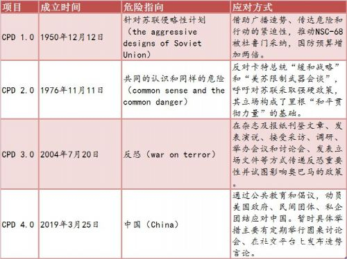 獨家網 杜佳 2019年3月25日,美國方面搞了個大新聞,復活了曾於冷戰時期成立的“應對威脅委員會”(CPD)。這個委員會最早成立於上世紀50年代,經過四次目標更新換代,現在最新版本叫作:“應對中國威脅委員會” (Committee on the Present Danger: China以下簡稱CPDC)。