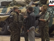 ▲英軍(戴貝雷帽軍官)在媒體眾目睽睽下被俄軍“送別”